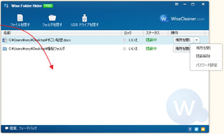 隠したいファイルやフォルダを、ドラッグ&ドロップするだけ。