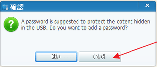 「パスワードがどうたら」と言ってきますが、「いいえ」でOK。