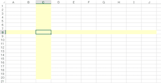 エクセルで、カレントセルの行・列をハイライトする方法です。
