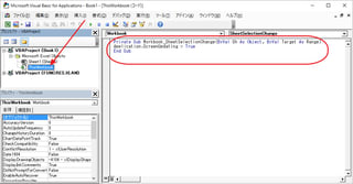 「ThisWorkbook」プロジェクトをダブルクリック。