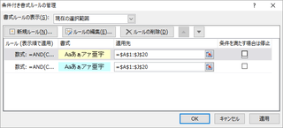 いずれも、A1~J20の範囲のみ、条件付き書式を設定してあります。