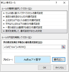 「選択セルと同じ行なら色を付ける」などの条件を設定します。
