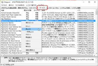 「サービス」タブでは、「現在の状態」が「開始」になっているものをチェック。
