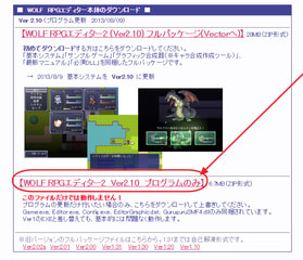 こちらのページで、「WOLF RPGエディター2~プログラムのみ」をクリック