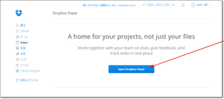 Dropboxにログイン→左側メニュー「Paper」をクリック。