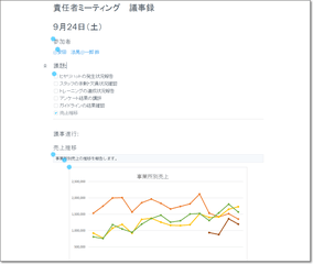 議事録を書き込んでいくと、メンバー全員がリアルタイムで確認できる。
