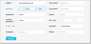 つぎに、ページ下部で必要事項を入力して、「Continue」をクリック。