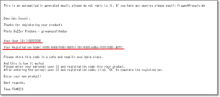 「Your User ID」と「Your Registration Code」が記載されています。