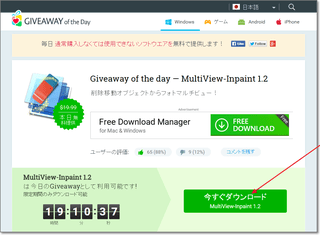 Giveaway of th Dayのページで、「今すぐダウンロード」