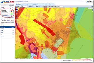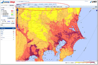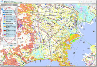 左側で、表示させたい情報をクリックすると、危険地域が色分けされます。