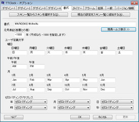 日付・時計欄を右クリック→「TTClockのオプション」で、