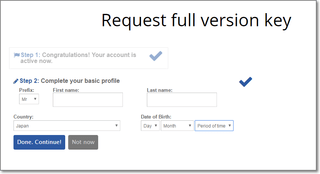 名前などをアルファベットで入力して、「Done, Continue!」をクリック。