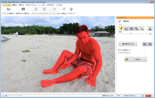 右側の「ツール」を使って、消したいところを赤く塗ります。