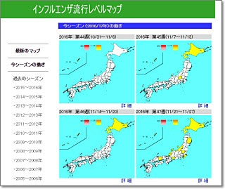 インフルエンザの流行状況を、確認できるサイト3つ。