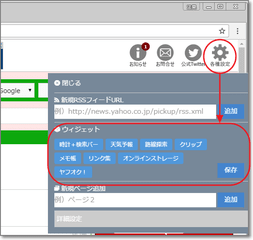 右上「各種設定」→「ウィジェット」で、お好みのものをクリックして選択。