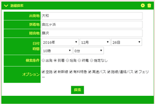 必要事項を入力して「探索」すると、Yahoo!の路線検索ページが表示されます。