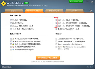 「ワンクリックメンテナンス」タブをクリックして・・・