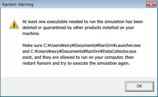 「RanSim実行ファイル(Launcher.exe)は、セキュリティ・チェック対象から除外」