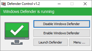 そこで、「Defender Control」でWindows Defenderを完全に無効化。