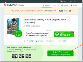 「Giveaway of the Day」のページで、 「今すぐダウンロード」をクリック。