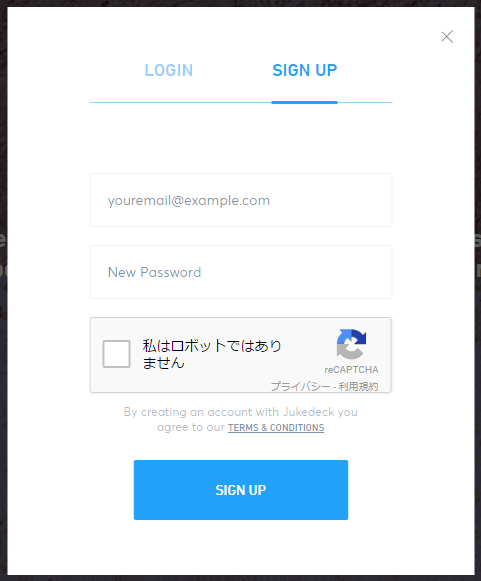未登録の場合は「SIGN UP」で、メールアドレス&パスワードを登録します。