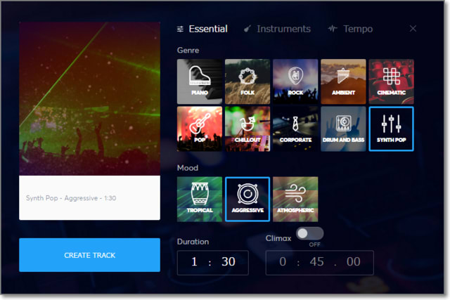 指定のイメージの曲を、自動作曲してくれるサービス。
