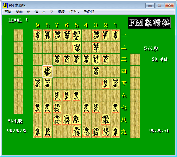 ・コンピュータ対戦の場合は、「対局(COM)」→「先手/後手」。