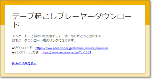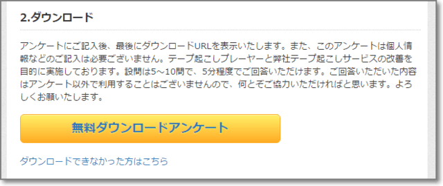 「テープ起こしプレーヤー」ページの下部、「無料ダウンロードアンケート」をクリック。