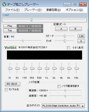 ノイズ処理機能、モノラル化対応、出力デバイス選択