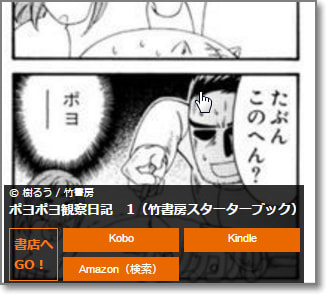 コマにマウスオンすると、作品へのショップリンクが出ます。