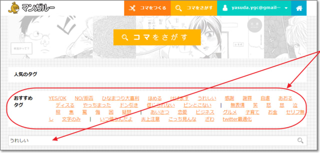 タグやキーワードで、コマを探します。