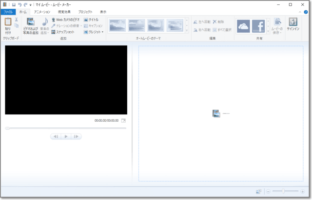 インストールが終了したら、スタートメニューから「ムービーメーカー」を起動してみましょう。