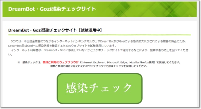 ふだん使っているブラウザで、「感染チェック」をクリック。