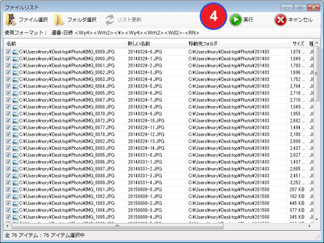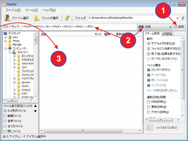 フォーマットを決めたら、3写真ファイルの入っているフォルダをドラッグ&ドロップ。