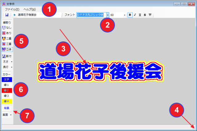 スポーツ新聞の見出し風の文字が、簡単に作れます。