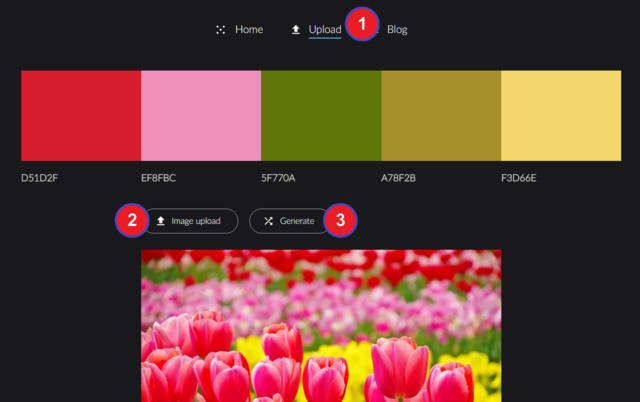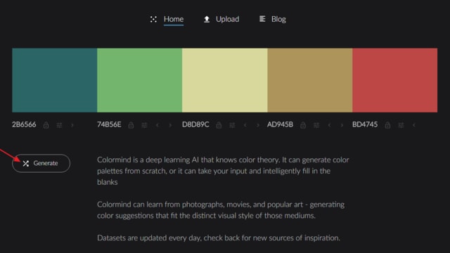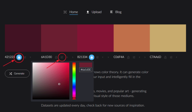 左側「Generate」をクリックするたびに、新しい配色を出します。