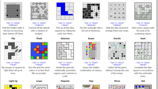 パソコン パズルゲーム集 手軽に遊べるパズルゲーム集。「Simon Tatham's Portable Puzzle Collection」今日、Gigazineで紹介されていたので、さっそく遊んでみました。英語なので、ルールの解読は翻訳サイトを利用しちゃいましたが... 2017.05.01 パソコン