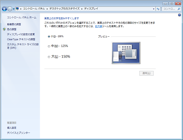 システムフォントのサイズ変更