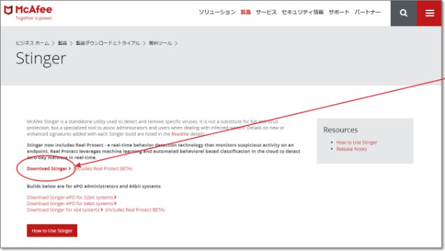 McAfeeの、非常駐型マルウェア駆除ツール。