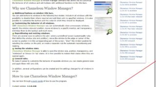 パソコン ウィンドウ表示をコントロールするソフト ウィンドウの表示のしかたを、いろいろとコントロールできるソフト。「Chameleon Window Manager」ボタン1つで、各ウィンドウを次のようにできます。・左(右)に寄せる・半透明表示に・つねに最前面表示に・タイトルバーのみに・タ... 2017.07.17 パソコン