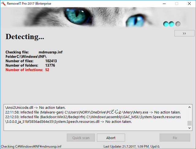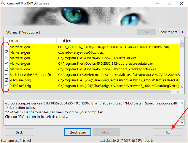 RemoveIT Proというマルウェア対策ソフトで、マルウェアチェックをしてみました。