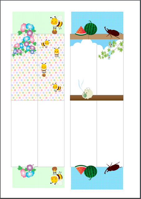 しおりをつくろう 教材(Word) X Facebook LINE コピー 2017.07.29 栞(しおり)を本にはさんだとき、上部からイラストが飛び出している。 そんな栞を、作ってみましょう。 4枚重ねするので、普通紙でもしっかりした栞になります。 テキストのダウンロードは、こちら。 test ad