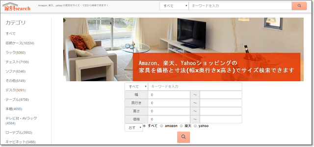 ネット通販で、指定サイズの家具をさがせるWebサービス。
