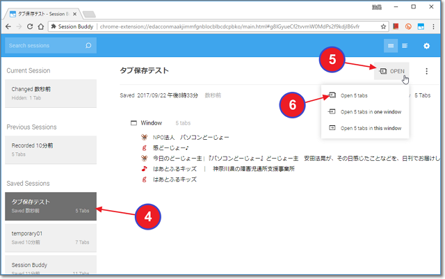 再現したいときは、「Session Buddy」アイコンをクリックして・・・