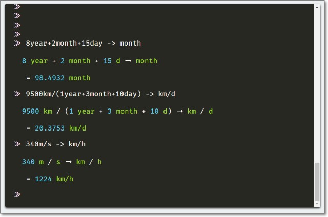 「400km/42L -> km/L」というように、「->」で変換後の単位を示します。