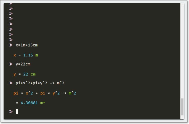 xとyを半径とする2つの円の面積の和を、平方メートルで求めてみました。