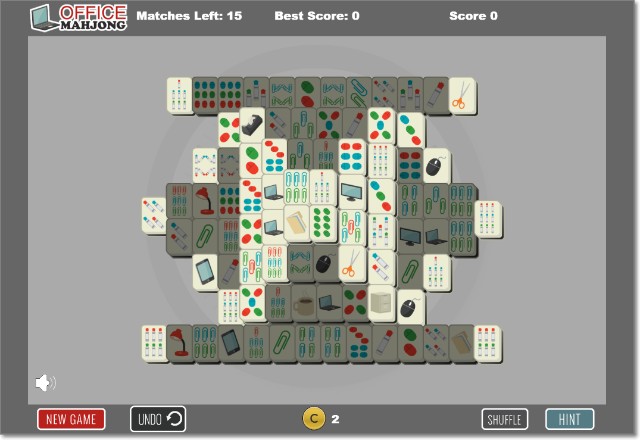 左右どちらかが空いている、同じ柄の牌をクリックして、消していきます。