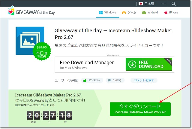 「Giveaway of the Day」のページで、「今すぐダウンロード」。