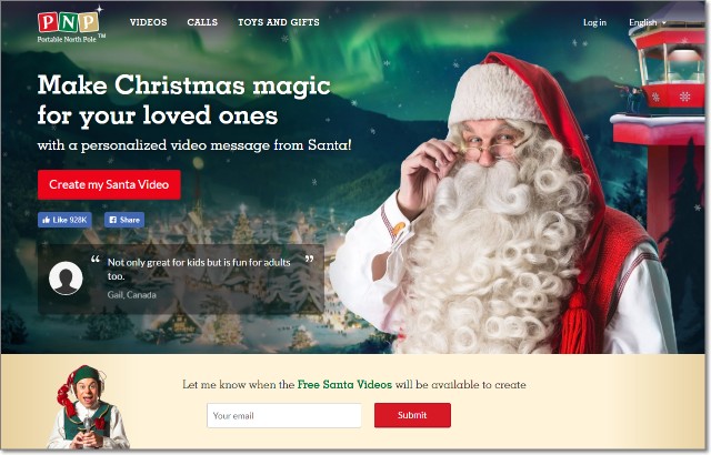 ログインして、「Create my Santa Video」ボタンをクリック。