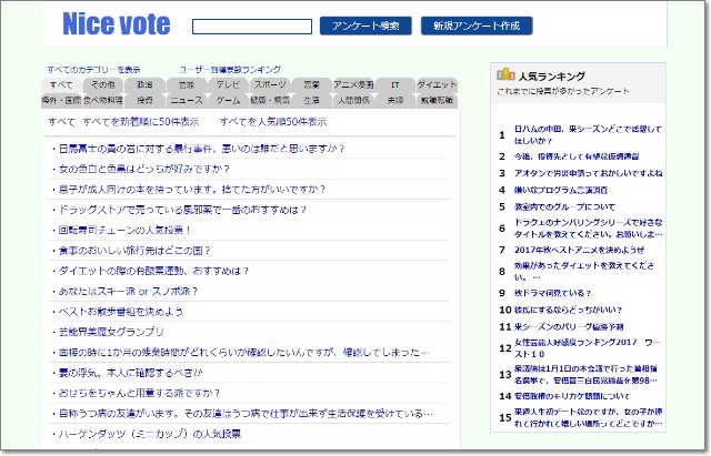 雑多で、おおむねお気楽なアンケートが、並んでいます。